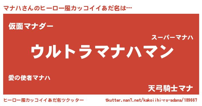 | ポケモン風あだ名 | 『マナハダネ』『マナゴンZ』 |