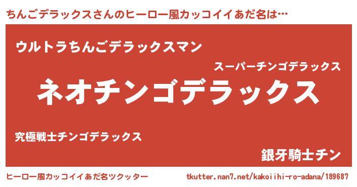 | 胡散臭い通販商品みたいなあだ名 | 『来世でも幸せになれる健康食品…その名も「ちんごデラックス」』 |
