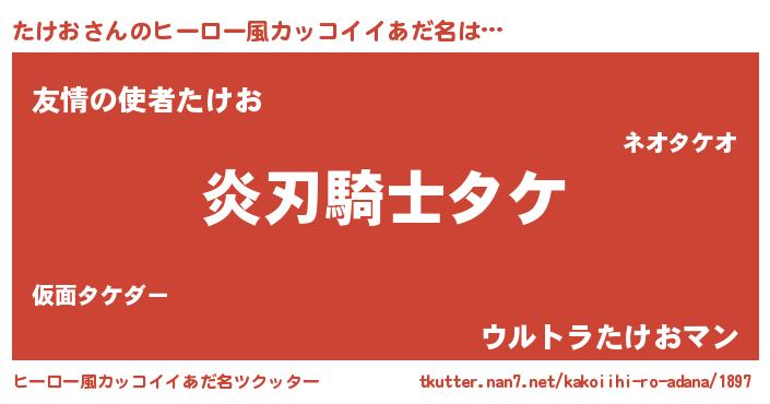 | 男性向けラノベタイトル風あだ名 | 『たけおの嫁は女の子じゃないと思った?』 |