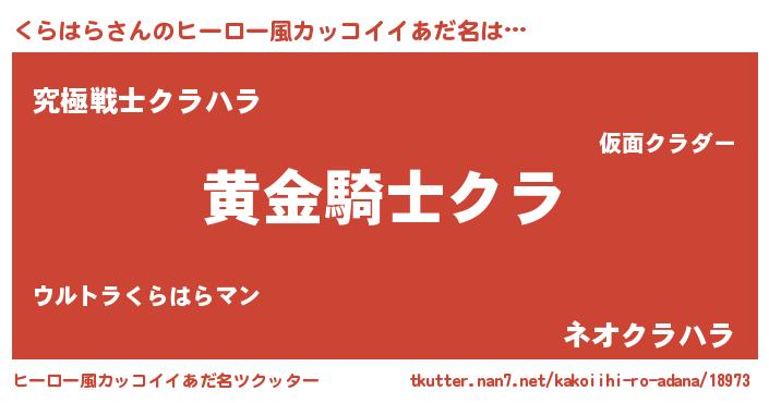 | 胡散臭い通販商品みたいなあだ名 | 『信頼と実績のサプリメント…その名も「くらはら」』 |