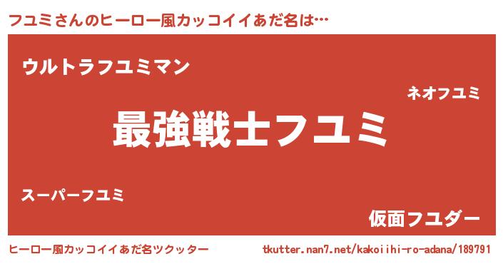 | 男性向けラノベタイトル風あだ名 | 『Re:フユミから始める異世界生活』 |