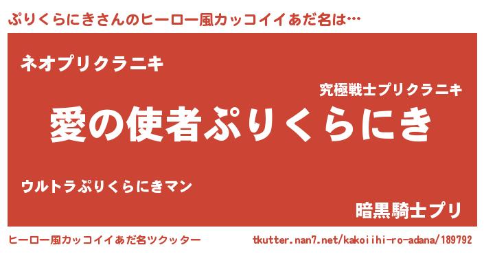 | 女子向けラノベタイトル風あだ名 | 『ぷりくらにき恋絵巻』 |