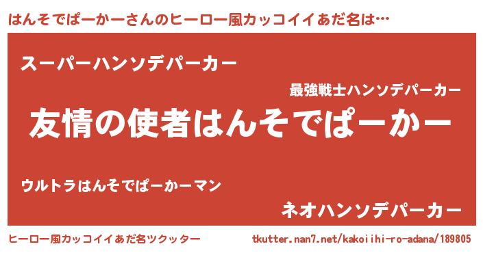 | 男性向けラノベタイトル風あだ名 | 『ハンソデパーカースレイヤー』 |