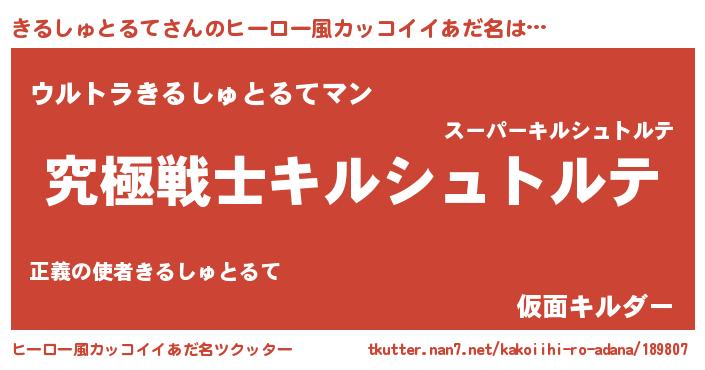| 意味不明あだ名 | 『自称きるしゅとるて』 |