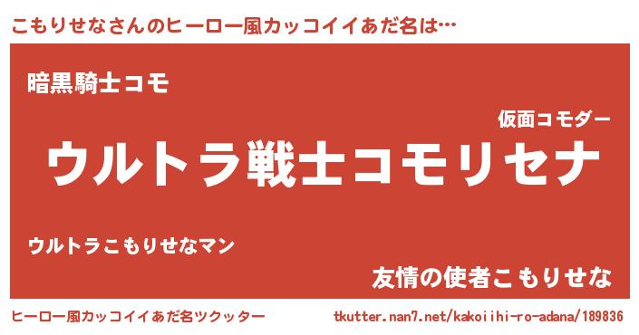 | 男性向けラノベタイトル風あだ名 | 『はたらくこもりせなさま!』 |