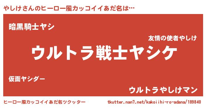 | 男性向けラノベタイトル風あだ名 | 『ヤシケスレイヤー』 |