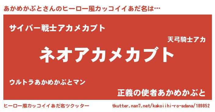 | 胡散臭い通販商品みたいなあだ名 | 『絶対に幸福をもたらす水素水…その名も「あかめかぶと」』 |