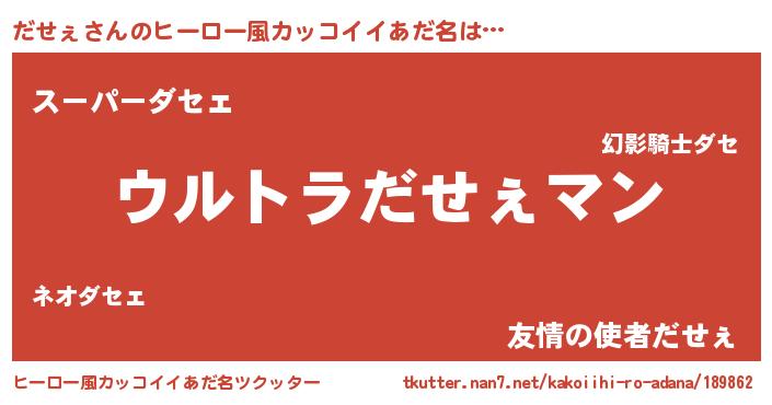 | 男性向けラノベタイトル風あだ名 | 『だせぇに滅ぼされるだけの簡単なお仕事です』 |