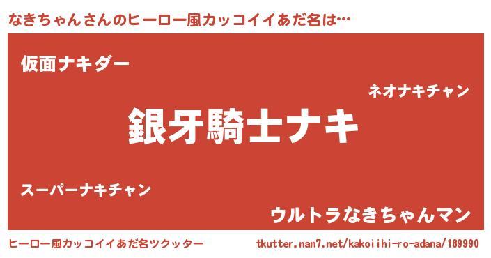 | 男性向けラノベタイトル風あだ名 | 『なきちゃんの嫁は女の子じゃないと思った?』 |