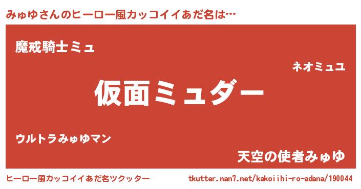 | 男性向けラノベタイトル風あだ名 | 『この素晴らしい世界にみゅゆを!』 |