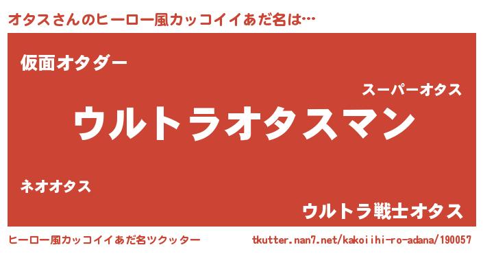 | 男性向けラノベタイトル風あだ名 | 『うちの娘の為ならば、俺はもしかしたらオタスも倒せるかもしれない。』 |
