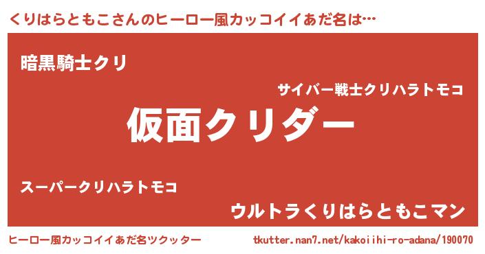 くりはらともこさんのヒーロー風カッコイイあだ名をツクッター!