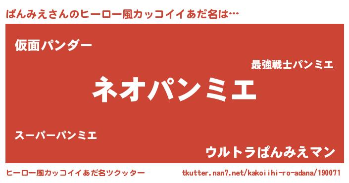 | 伝説のあだ名 | 『古より伝わる勇者ぱんみえ』 |