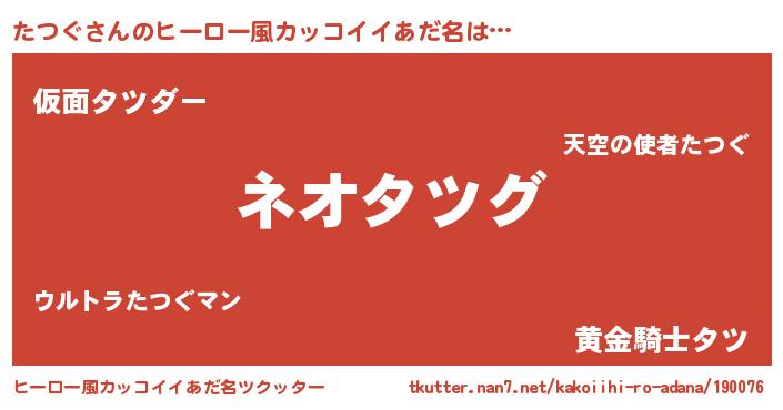 | 男性向けラノベタイトル風あだ名 | 『誰もが恐れるあのたつぐが、ぼくの専属メイドになるようです。』 |