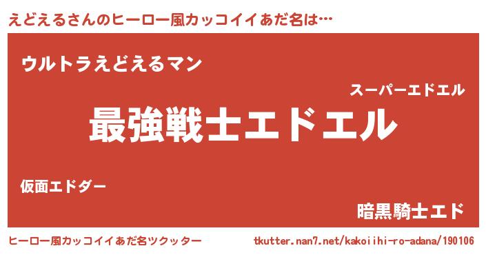 | 男性向けラノベタイトル風あだ名 | 『Re:えどえるから始める異世界生活』 |