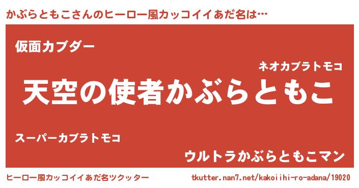 | 男性向けラノベタイトル風あだ名 | 『うちのかぶらともこが世界を掌握している!』 |
