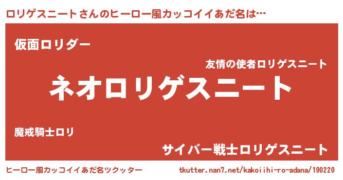 | 意味不明あだ名 | 『永久保存ロリゲスニート』 |