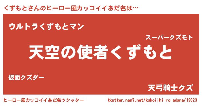 | 男性向けラノベタイトル風あだ名 | 『くずもと~年齢イコール彼女いない歴の魔法使い~』 |