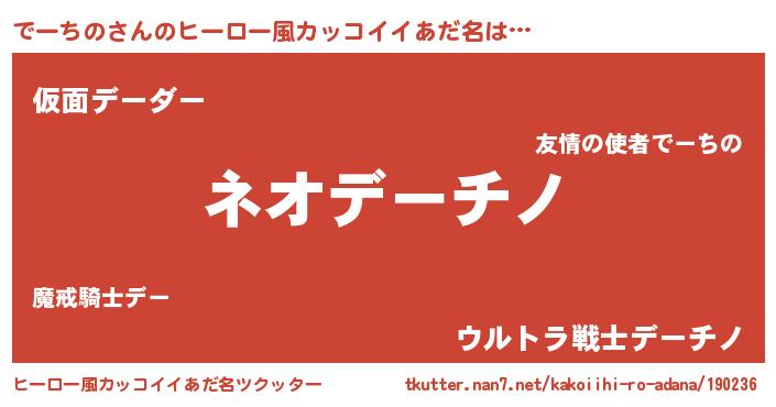 | 胡散臭い通販商品みたいなあだ名 | 『絶対に幸福をもたらす健康食品…その名も「でーちの」』 |