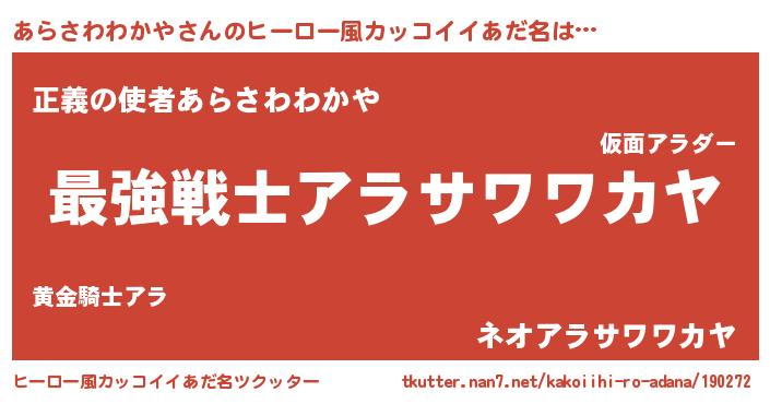 | 意味不明あだ名 | 『自称あらさわわかや』 |