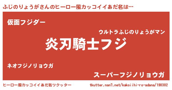 | 胡散臭い通販商品みたいなあだ名 | 『全米が絶賛したサプリメント…その名も「ふじのりょうが」』 |