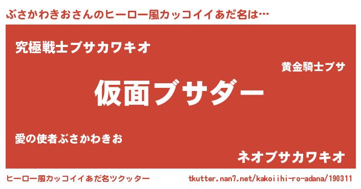 | 意味不明あだ名 | 『住所不定無職ぶさかわきお(14歳)』 |