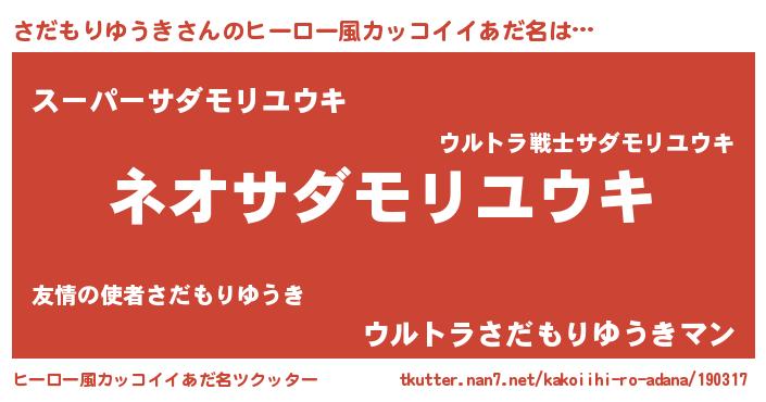 | 胡散臭い通販商品みたいなあだ名 | 『絶対に幸福をもたらす水素水…その名も「さだもりゆうき」』 |