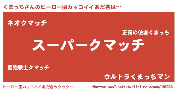 | 自動車の名前っぽいあだ名 | 『クールスマイス』『クマティマ』 |