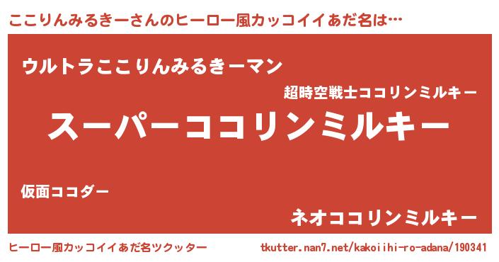 | 胡散臭い通販商品みたいなあだ名 | 『億万長者になれる霊験あらたかなお札…その名も「ここりんみるきー」』 |