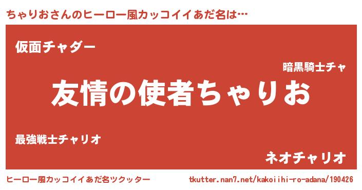 | 欧米人風あだ名 | 『ダニエルちゃりお』『ウサインちゃりお』 |