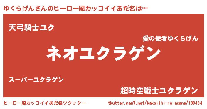 | 男性向けラノベタイトル風あだ名 | 『ユクラゲンスレイヤー』 |