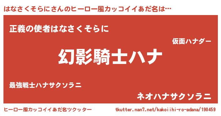 | ポケモン風あだ名 | 『ヒハナサクソラニ』『ハックウザ』 |