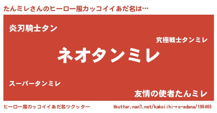 | 男性向けラノベタイトル風あだ名 | 『たんミレという概念が存在しない退屈な世界 』 |