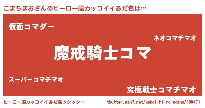 | 男性向けラノベタイトル風あだ名 | 『ダンジョンにこまちまおを求めるのは間違っているだろうか』 |