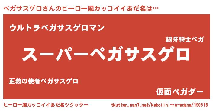 | 男性向けラノベタイトル風あだ名 | 『ペガサスゲロの憂鬱』 |