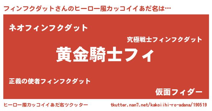 | 胡散臭い通販商品みたいなあだ名 | 『信頼と実績のサプリメント…その名も「フィンフクダット」』 |
