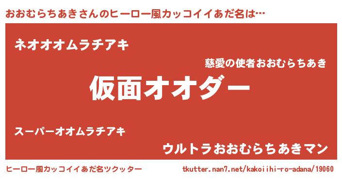 | 男性向けラノベタイトル風あだ名 | 『この素晴らしい世界におおむらちあきを!』 |
