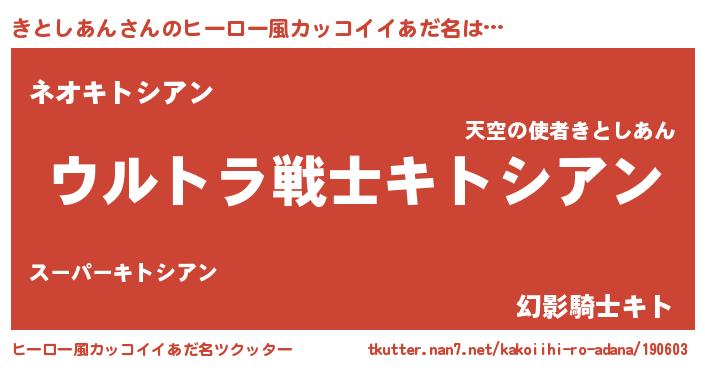 | 意味不明あだ名 | 『自称きとしあん』『永久保存きとしあん』 |