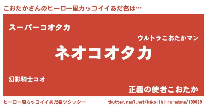 | 男性向けラノベタイトル風あだ名 | 『こおたかに滅ぼされるだけの簡単なお仕事です』 |