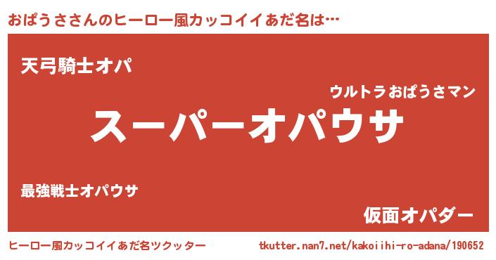 | 胡散臭い通販商品みたいなあだ名 | 『億万長者になれるブレスレット…その名も「おぱうさ」』 |