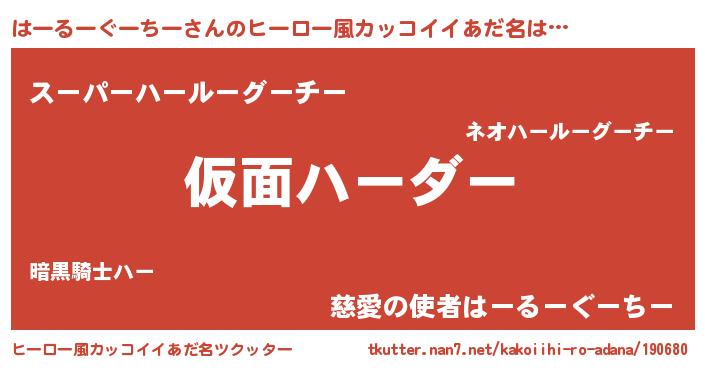 | 意味不明あだ名 | 『住所不定無職はーるーぐーちー(79歳)』 |