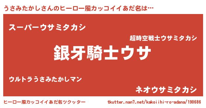 | 男性向けラノベタイトル風あだ名 | 『転生したらうさみたかしだった件』 |