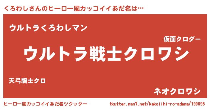 | 伝説のあだ名 | 『秘められし忍者くろわし』 |