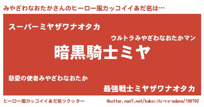 | 意味不明あだ名 | 『とにかく怪しいみやざわなおたか』 |