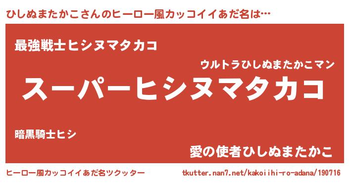 | 男性向けラノベタイトル風あだ名 | 『ヒシヌマタカコアートオンライン』 |