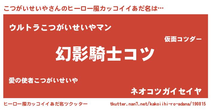 | 意味不明あだ名 | 『とにかく怪しいこつがいせいや』 |