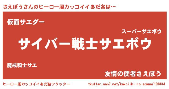 | 意味不明あだ名 | 『なめこ科さえぼう属』『自称さえぼう』 |