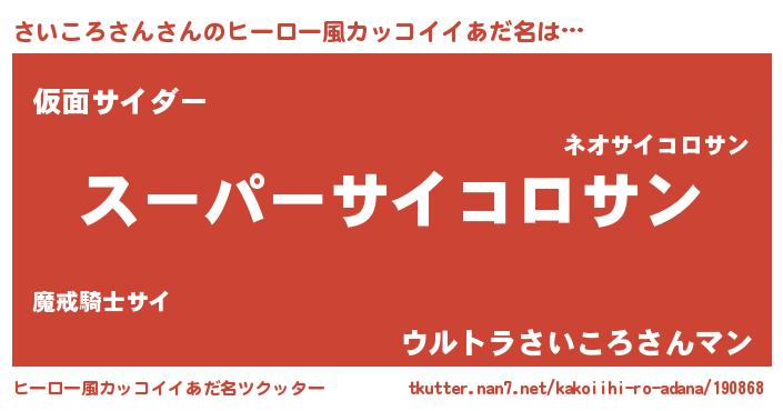 | 胡散臭い通販商品みたいなあだ名 | 『必ず成功する霊験あらたかなお札…その名も「さいころさん」』 |