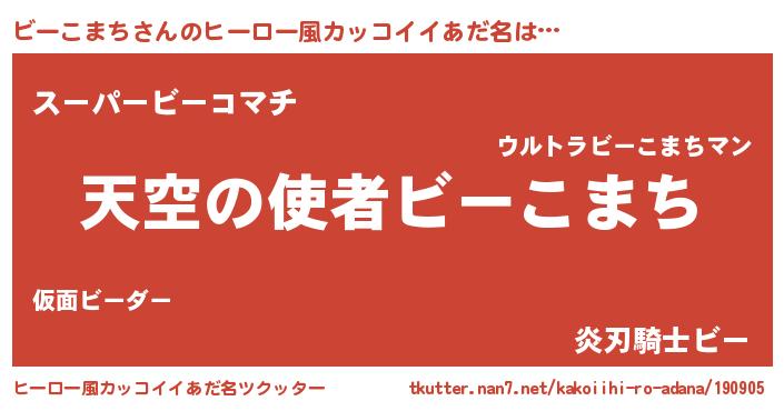 | 女子向けラノベタイトル風あだ名 | 『死神ビーこまちの再婚』 |