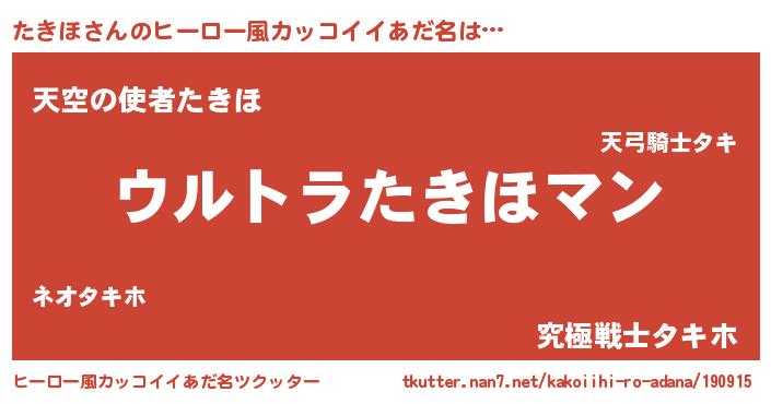 | 男性向けラノベタイトル風あだ名 | 『たきほに滅ぼされるだけの簡単なお仕事です』 |